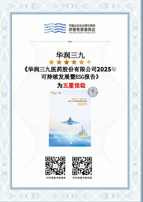 华润三九秉持“关爱大众健康,共创美好生活”的企业使命,持续推动产品创新,在呼吸、肿瘤、心脑血管、消化、骨科、儿科、皮肤等多个治疗领域持续深耕、探索创新。此次获奖,是对华润三九在中医药领域创新发展的高度认可。未来,公司将继续加大对中医药研发创新的支持力度,不断推动中医药事业和产业高质量发展。
