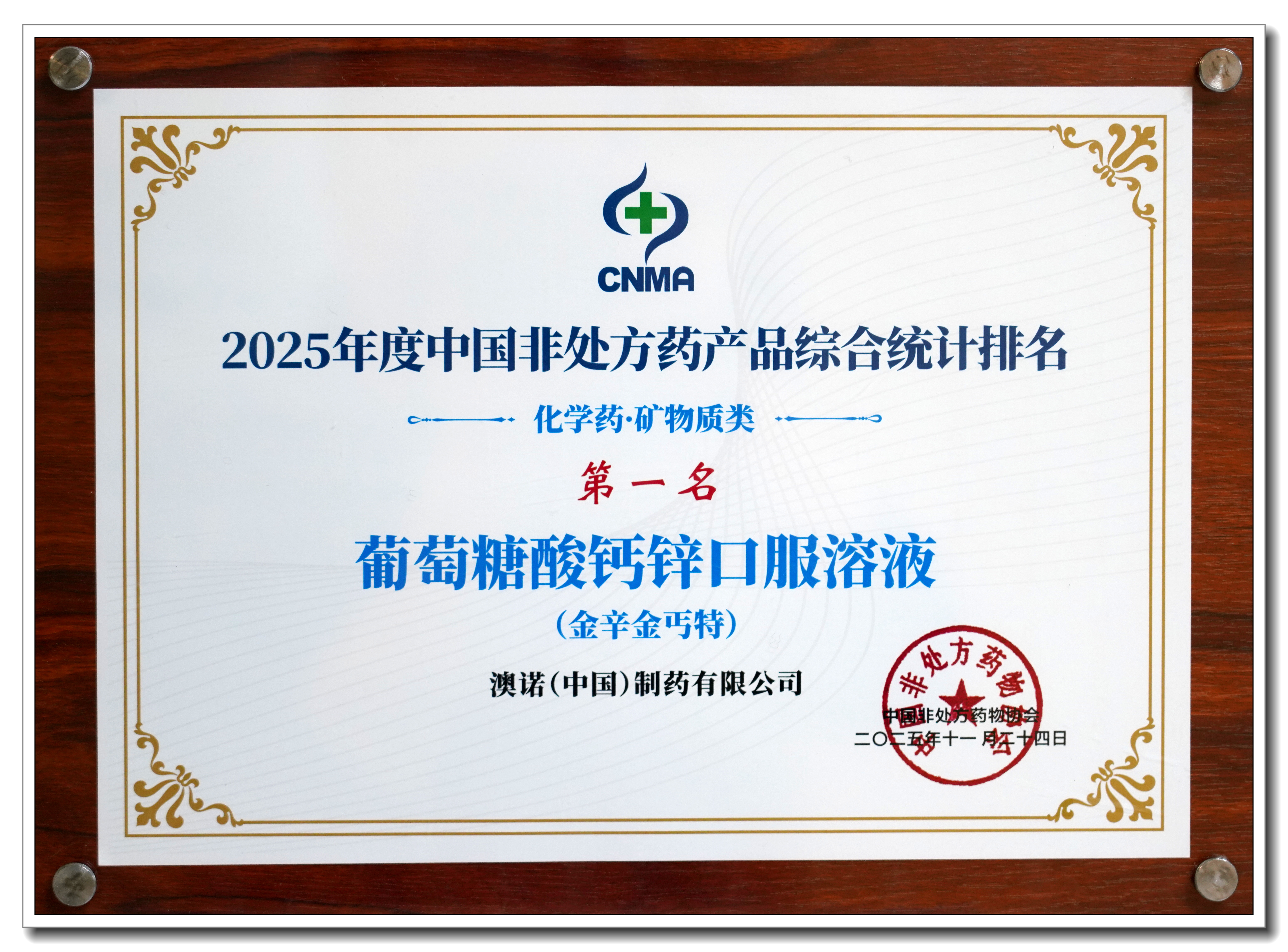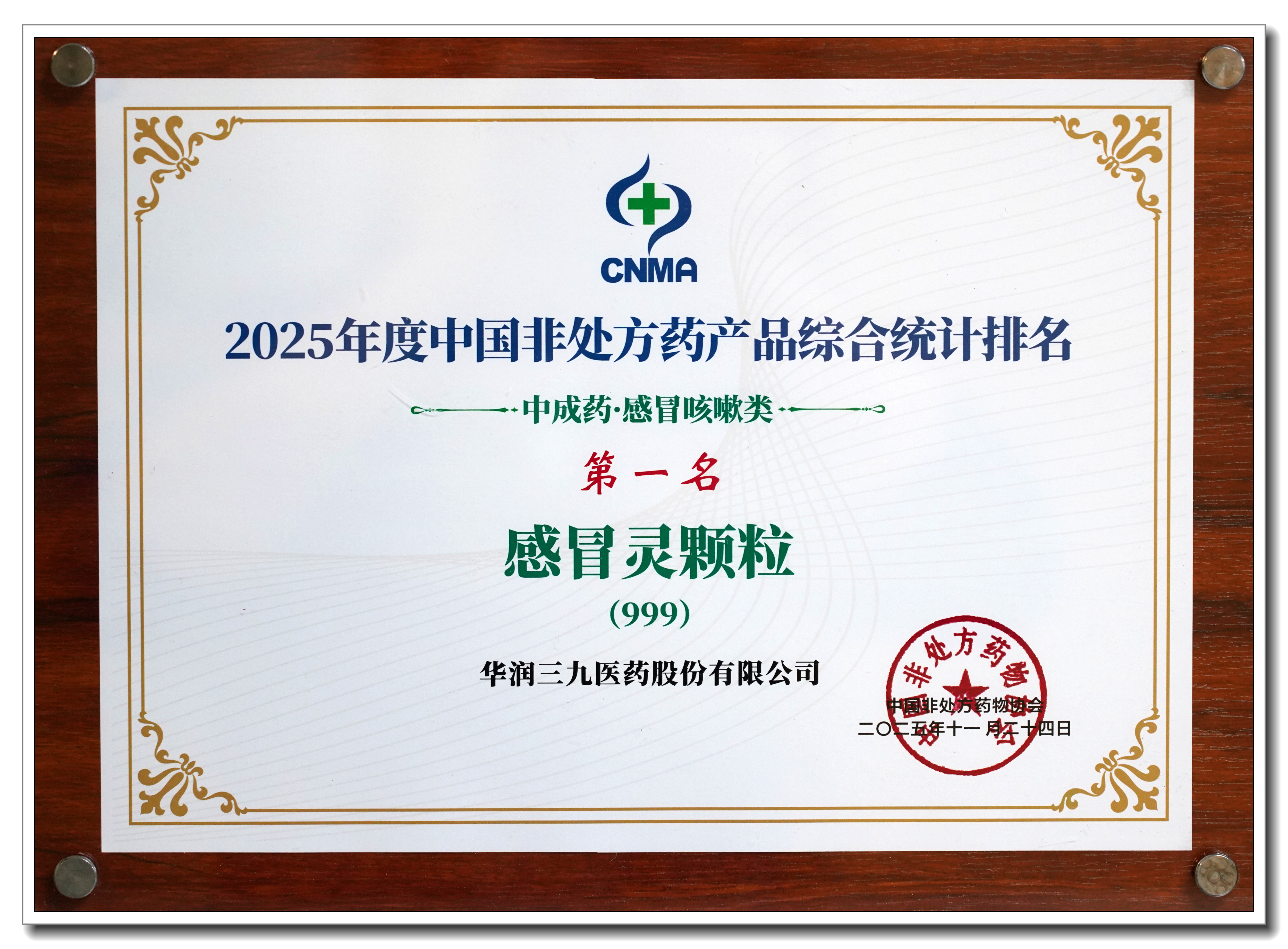 近日,中国非处方药物协会公布2025年度非处方药企业及产品品牌统计调研结果,华润三九蝉联“中国非处方药生产企业排行榜”第一名,“999感冒灵颗粒”“澳诺葡萄糖酸钙锌口服溶液”“小儿氨酚黄那敏颗粒”“小儿感冒颗粒”等多个产品位居排行榜前列,并入选“黄金大单品”榜单。