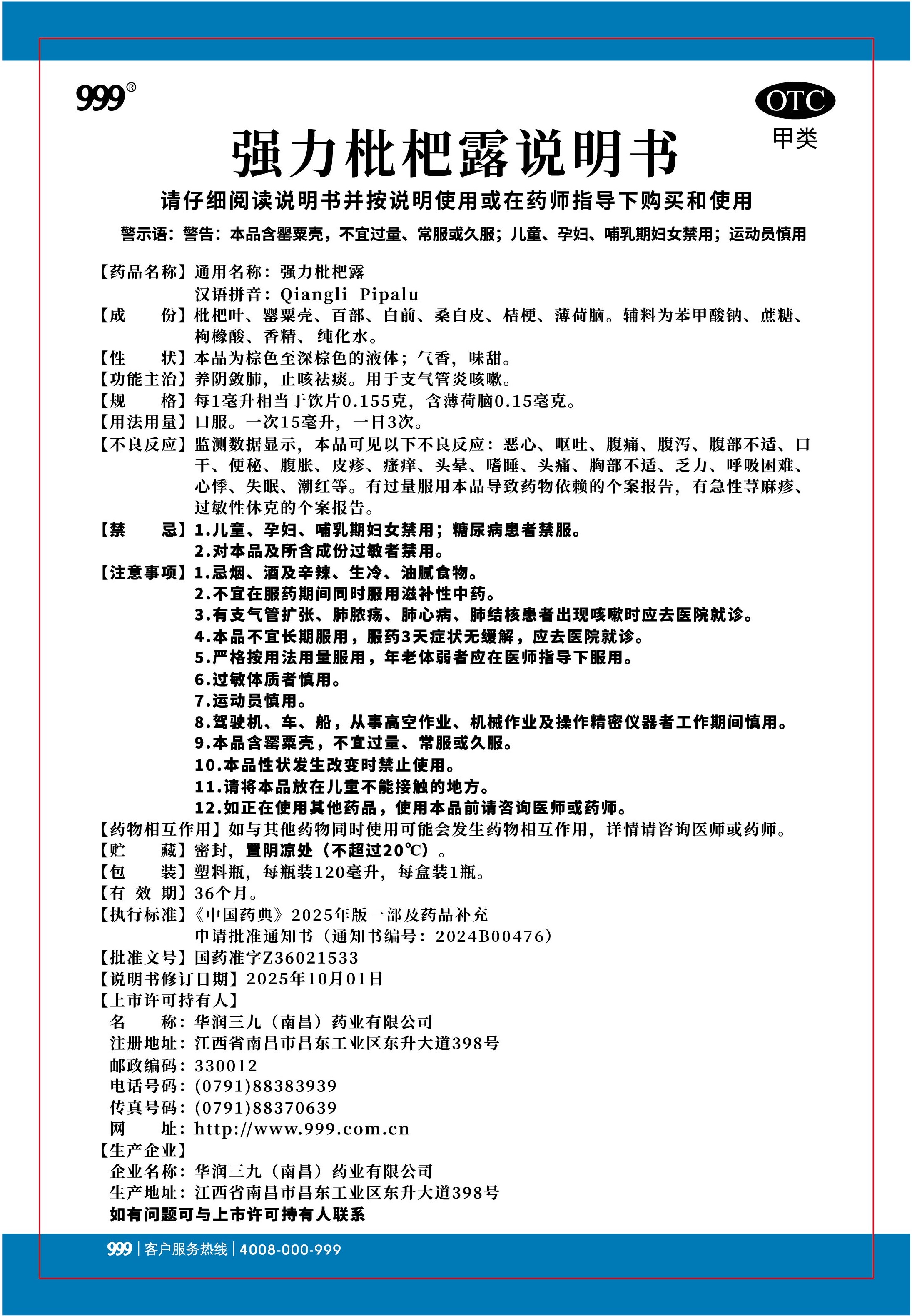 强力枇杷露-南昌三九(120毫升瓶装)