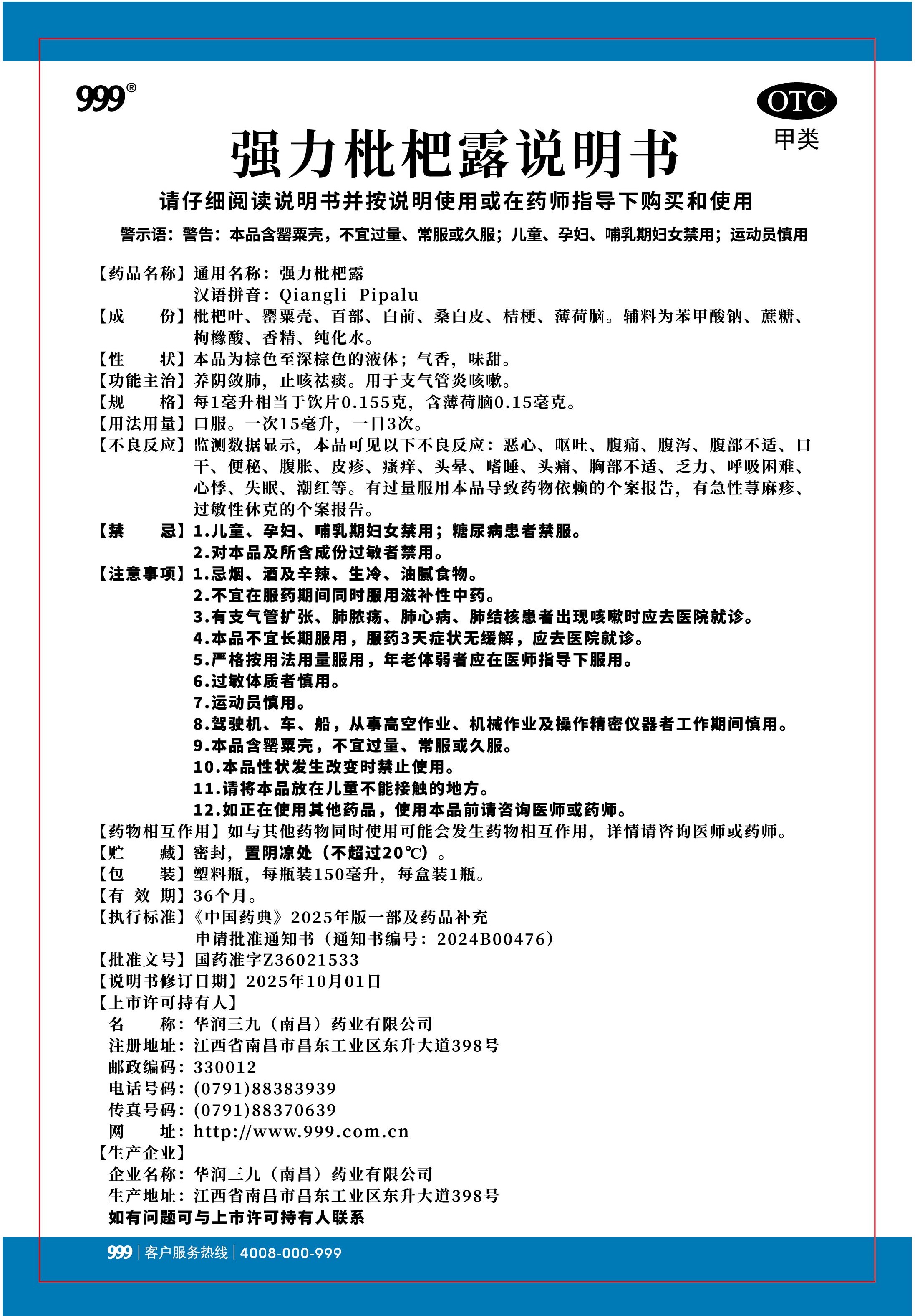 强力枇杷露-南昌三九(150毫升瓶装)