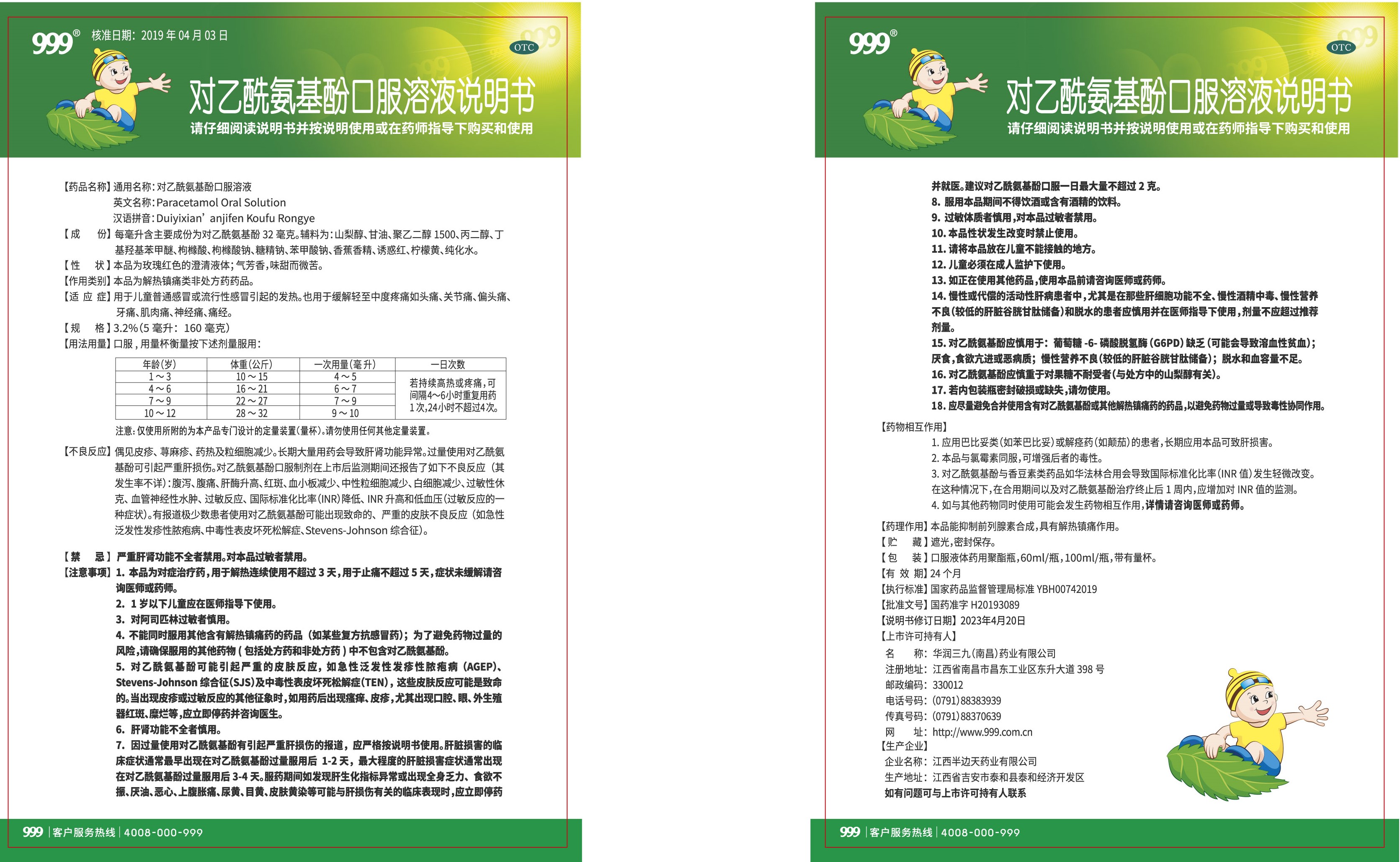 对乙酰氨基酚口服溶液-南昌三九(瓶装)