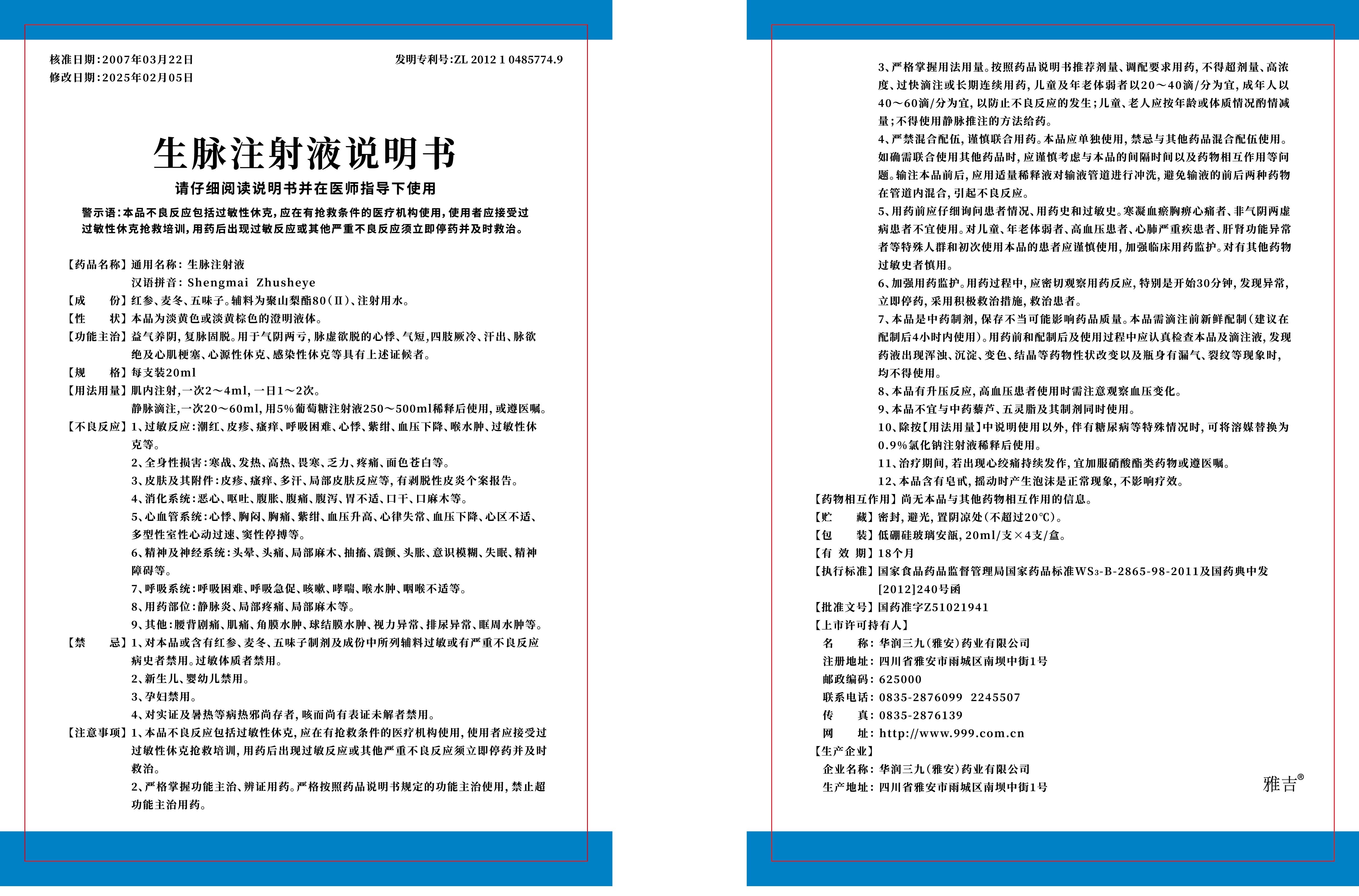 益气养阴,复脉固脱。用于气阴两亏,脉虚欲脱的心悸、气短,四肢厥冷、汗出、脉欲绝及心肌梗塞、心源性休克、感染性休克等具有上述证候者。
